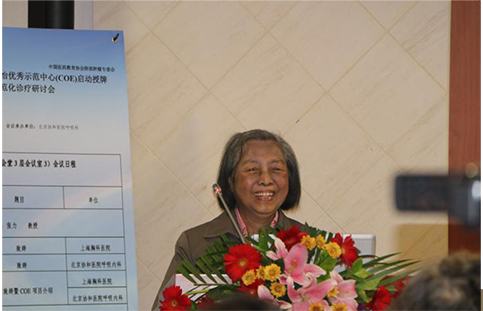 北京协和医院呼吸内科李龙芸教授到会并致辞,李龙芸教授回顾了自上世纪八十年代开始,上海胸科医院和北京协和医院肺癌中心,在肺癌的临床实践和科学研究方面,进行了广泛的合作,共同推进了肺癌规范化诊疗的发展,李龙芸教授表示凭借COE项目平台,将进一步推动两院在肺癌领域的各项合作,并共同推动各级医院肺癌规范化诊疗水平的提高。